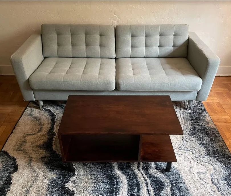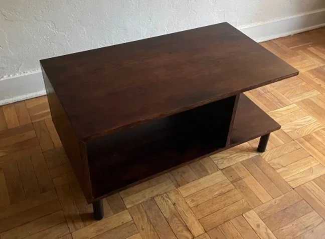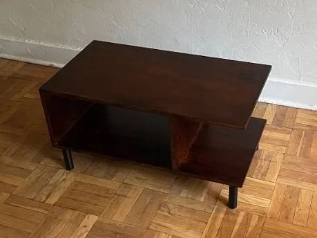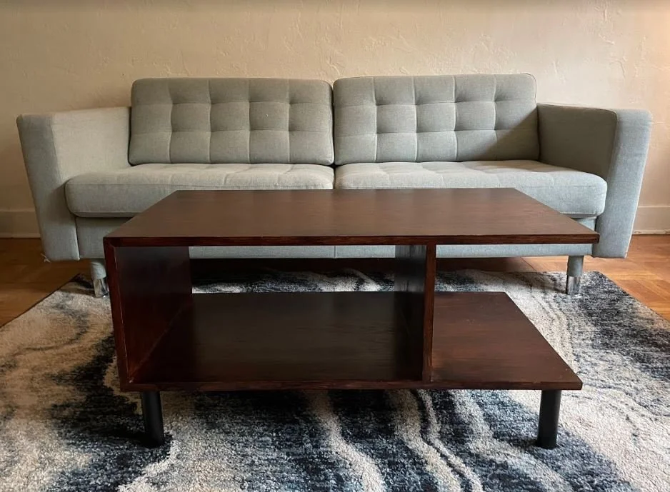 I decided that I wanted to create a coffee table for my apartment. I live with my girlfriend so I needed to create a table that we both liked. I wanted it to be made from wood, with simple metal legs, and have a modern look to it. The only size constraint was that I wanted it to be the same height as the seat of our couch, which was 18” off the ground.