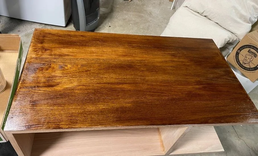 Next we had to choose a stain color. I was leaning toward the darker colors, and my girlfriend was leaning toward the red colors. We decided to meet in the middle on Red Mahogany (second row, furthest right).