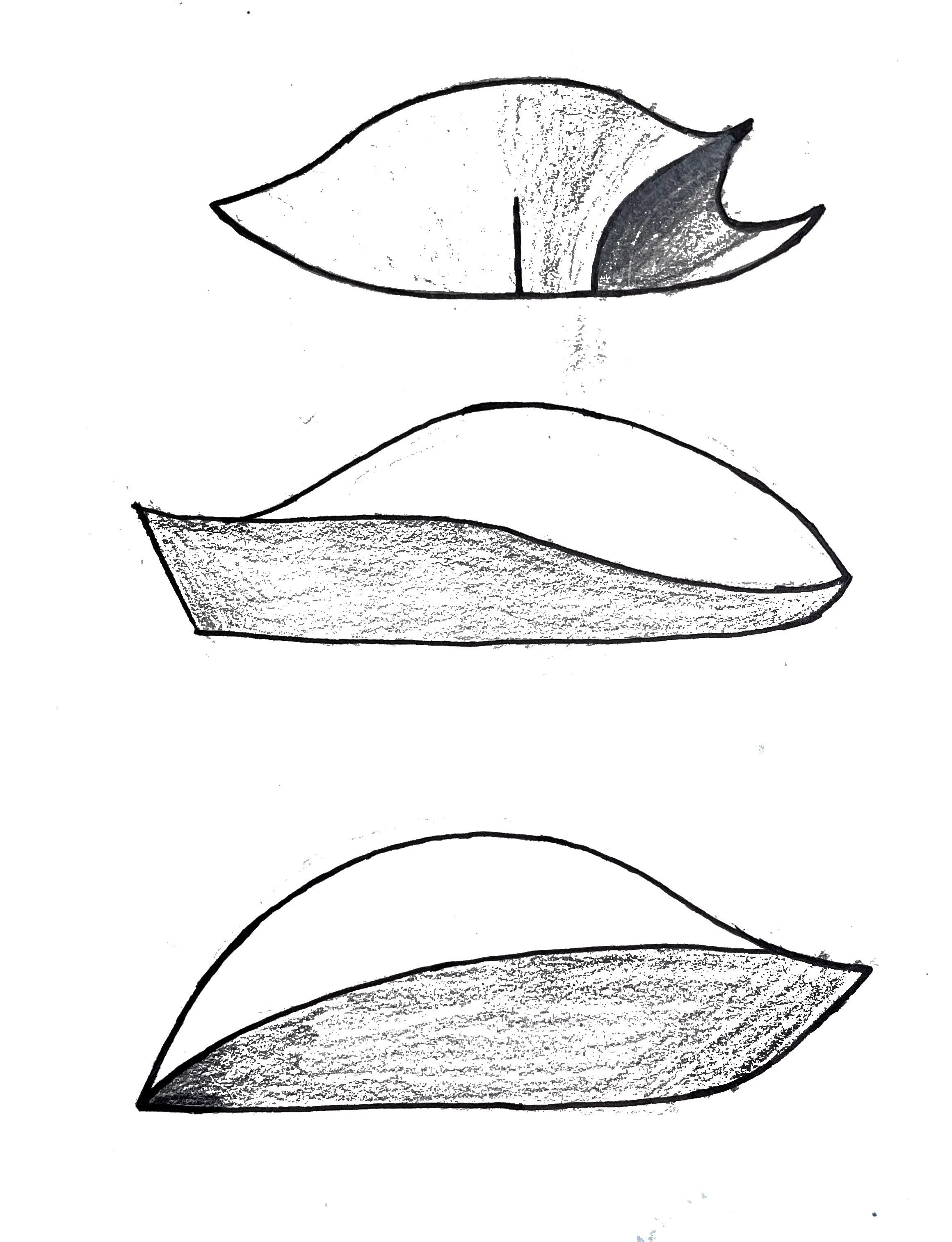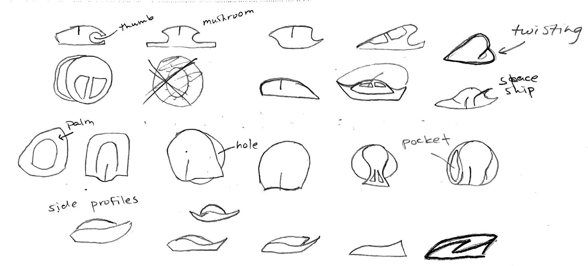 However, I wasn’t a big fan of any of the ideas. After thinking some more, I took the thumb cavity from the idea in the top left, and the wide base of the bottom left, and drew up the idea below.