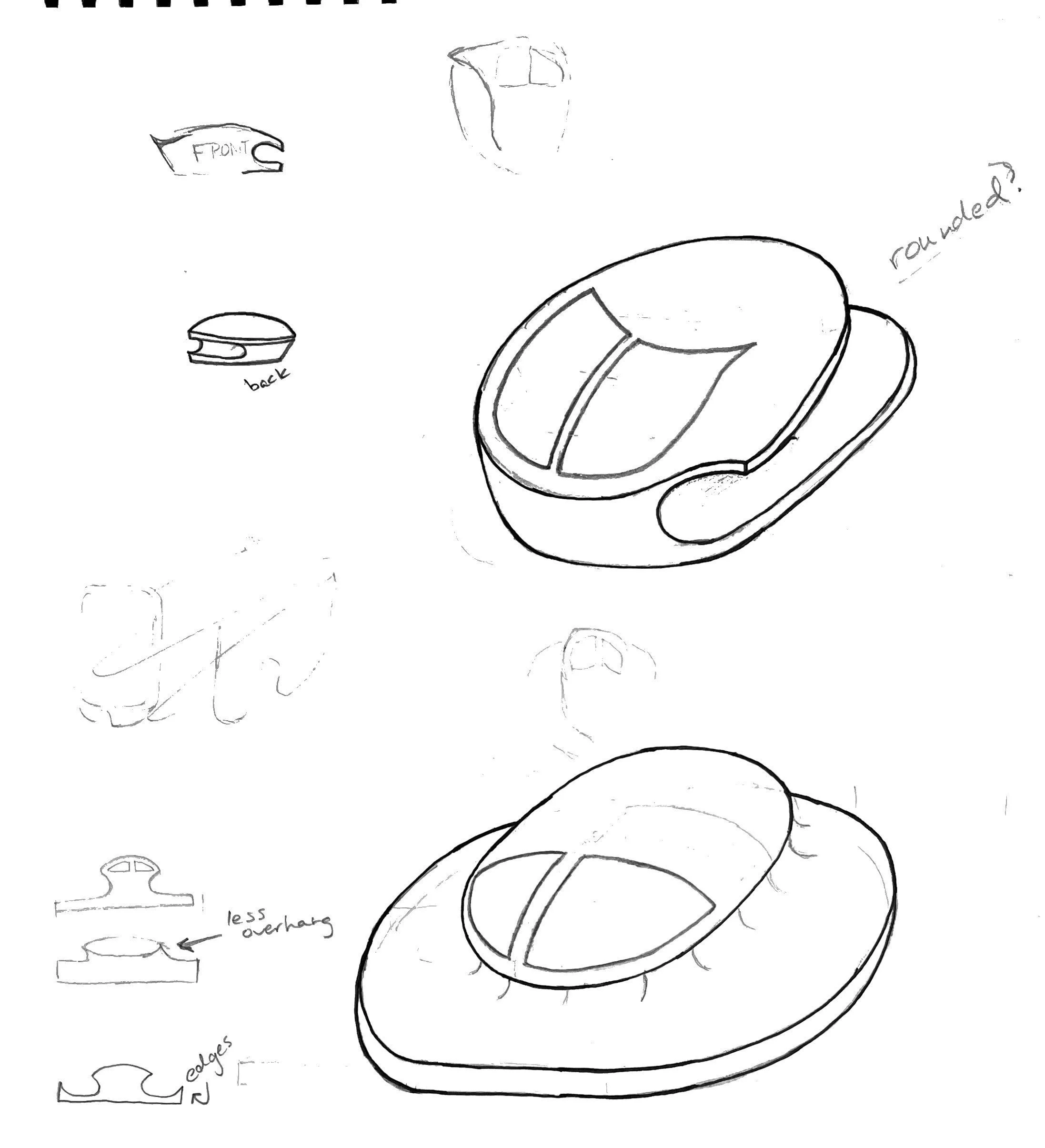 I decided to redesign a computer mouse. I had been working with a Bluetooth mouse a lot at the time and it was incredibly small and uncomfortable. So I set out to create a larger, more comfortable mouse. I also wanted to incorporate sharp edges with smooth curves.